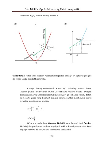 Gambar 10.16 (a) ilustrasi cermin parabolan. Persamaan umum parabola adalah y = ax . (c) Ilustrasi garis-garis