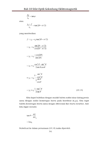 sama dengan sudut kemiringan kurva pada koordinat (x0,y0). Kita ingat