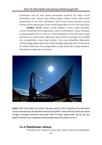 Gambar 10.18. Contoh aplikasi cermi dengan lengkungan parabola. Cermin ini digunakan untuk memanaskan