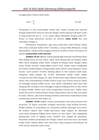 Gambar 10.23 adalah contoh pemantulan internal total berkas laser