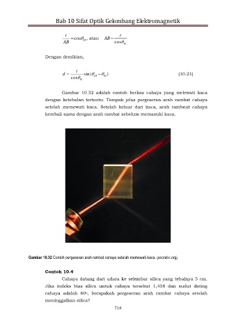 Gambar 10.32 adalah contoh berkas cahaya yang melewati kaca