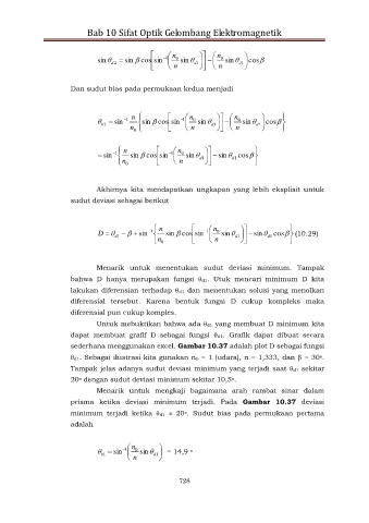 prisma ketika deviasi minimum terjadi. Pada Gambar 10.37 deviasi