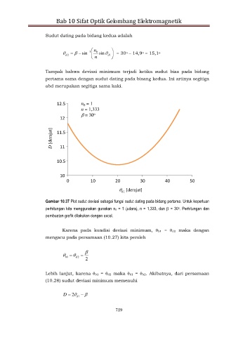 Gambar 10.37 Plot sudut deviasi sebagai fungsi sudut dating pada bidang pertama. Untuk keperluan