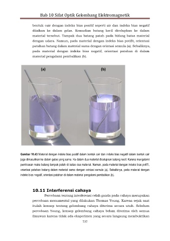 Gambar 10.43 Material dengan indeks bias positif dalam bentuk cair dan indeks bias negatif dalam bentuk cair