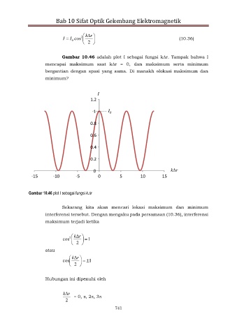 Gambar 10.46 adalah plot I sebagai fungsi kr. Tampak bahwa I
