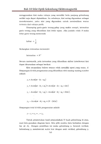 Untuk pementukan hasil penjumlahah N buah gelombang di atas,