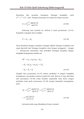 perkalian hasil pada persamaan (10.45) dengan kompleks konjugatnya,