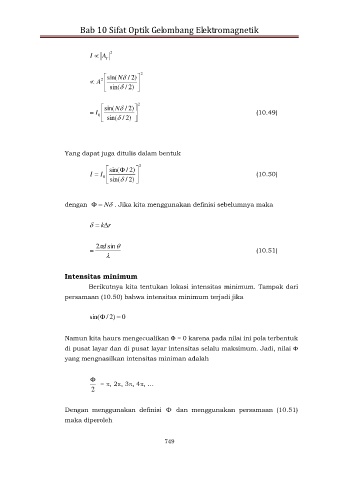 persamaan (10.50) bahwa intensitas minimum terjadi jika