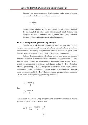 penyusunnya. Gelombang yang berbeda memiliki maksimum pada sudut