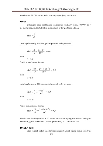 Jika jumlah celah interferensi sangat banyak maka celah tersebut
