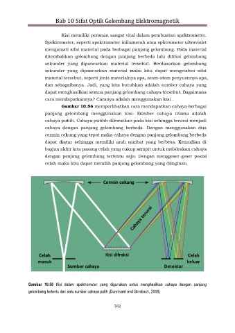 Gambar 10.56 Kisi dalam spektrometer yang digunakan untuk menghasilkan cahaya dengan panjang
