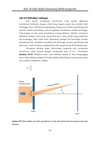 Gambar 10.57. Misalkan lebar celah difraksi adalah D. Kita menganggap