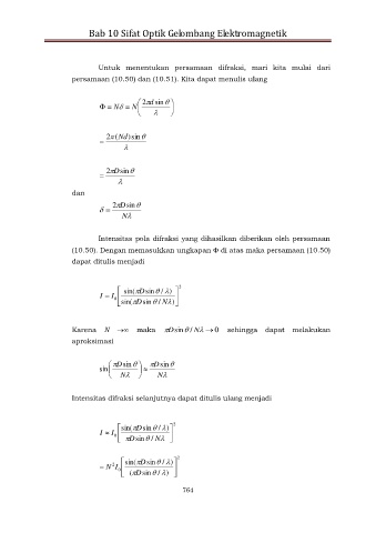 Intensitas difraksi selanjutnya dapat ditulis ulang menjadi