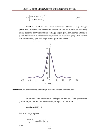 Gambar 10.58 adalah sketsa intensitas difraksi sebagai fungsi