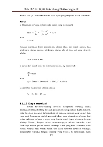derajat dan (b) dalam sentimeter pada layar yang berjarak 20 cm dari celah