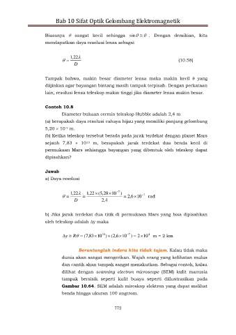 lain, resolusi lensa teleskop makin tinggi jika diameter lensa makin besar.