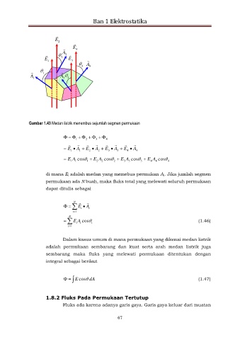 Gambar 1.43 Medan listrik menembus sejumlah segmen permukaan