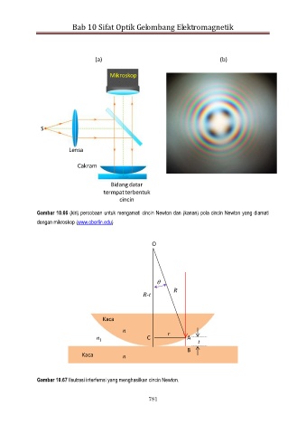 Gambar 10.67 Ilsutrasi interfernsi yang menghasilkan cincin Newton.