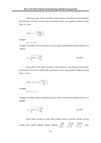 Dengan demikian kita dapatkan jari-jari pola interferensi konstruktif ke-m