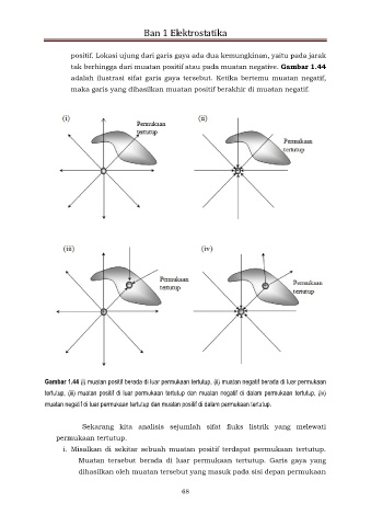 tertutup, (iii) muatan positif di luar permukaan tertutup dan muatan negatif di dalam permukaan tertutup, (iv)