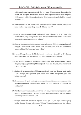 11) Cahaya monoktromatik dengan panjang gelombang 633 nm jatuh pada celah