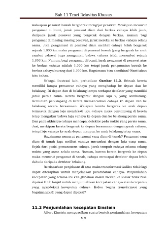 sama. Jika pengamaat di pesawat diam melihat cahaya telah bergerak