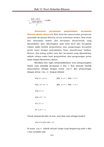 benda yang memiliki kecepatan u dan v. Kita menulis bentuk