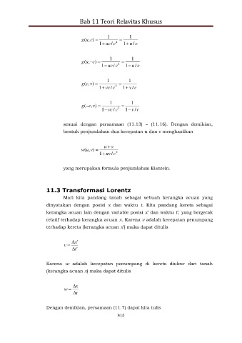 bentuk penjumlahan dua kecepatan u dan v menghasilkan