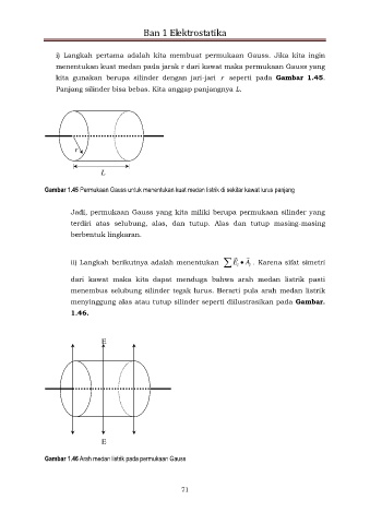 Gambar 1.45 Permukaan Gauss untuk menentukan kuat medan listrik di sekitar kawat lurus panjang