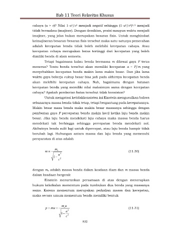 besar. Jika laju benda mendekati laju cahaya maka massa benda harus