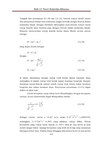 Sebagai contoh, untuk u =310 m/s, maka /1 1 u 2 /c 2 =1,0050378,