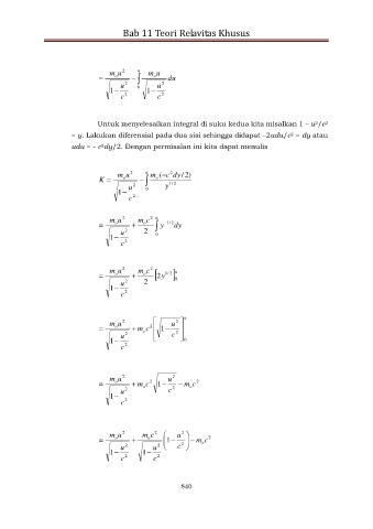 Untuk menyelesaikan integral di suku kedua kita misalkan 1 – u /c