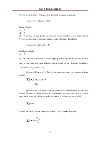 dengan silinder, yaitu bagian pelat seluas A. Jumlah muatan adalah
