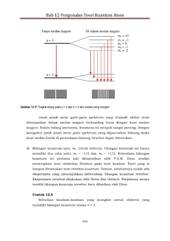 Gambar 12.17 Tingkat energi pada n = 3 dan n = 2 dan transisi yang mungkin