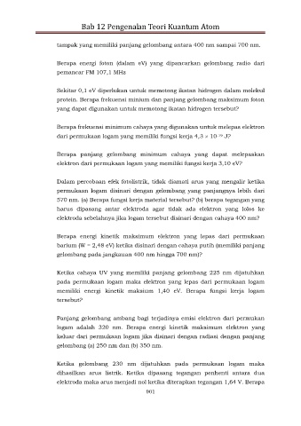 barium (W = 2,48 eV) ketika disinari dengan cahaya putih (memiliki panjang