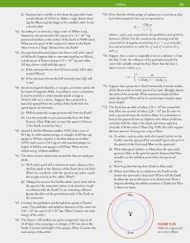 10.39 km/s when at perigee at a height of 457 km above the FIGURE 9.38