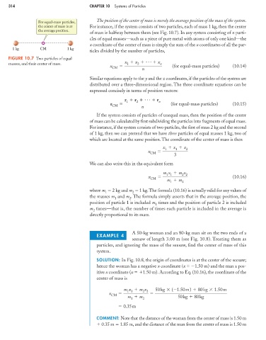 of mass is halfway between them (see Fig. 10.7). In any system consisting of n parti-