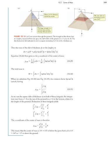 Equation (10.26) then gives us the y coordinate of the center of mass: