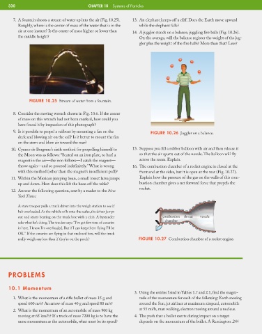 7. A fountain shoots a stream of water up into the air (Fig. 10.25). 13. An elephant jumps off a cliff. Does the Earth move upward