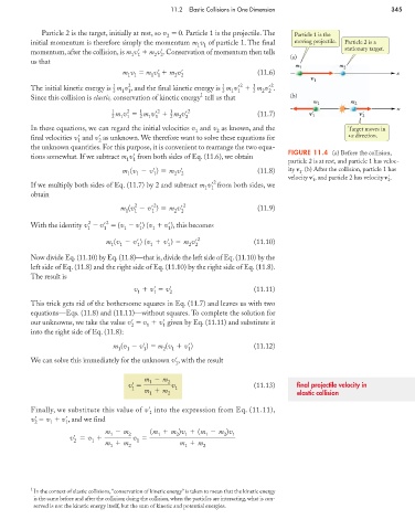 tions somewhat. If we subtract m v from both sides of Eq. (11.6), we obtain particle 2 is at rest, and particle 1 has veloc-