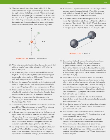 and *46. A dumbbell consists of two uniform spheres of mass M and