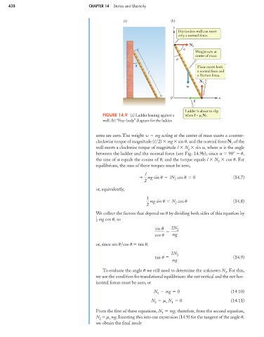 between the ladder and the normal force (see Fig. 14.9b); since 90 ,