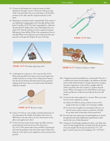 98. Figure. 14.74 shows a pair of pliers and their dimensions. If 4.0 m, what must be the radius of the second wire?