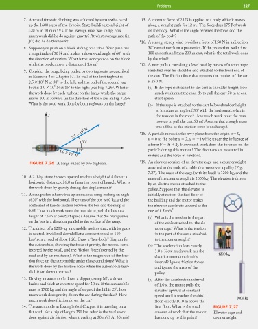 FIGURE 7.26 A barge pulled by two tugboats. *19. An elevator consists of an elevator cage and a counterweight