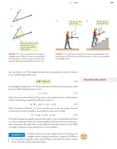 FIGURE 7.6 (a) A constant force F acts during FIGURE 7.7 (a) The force exerted by the woman is perpendicular to the