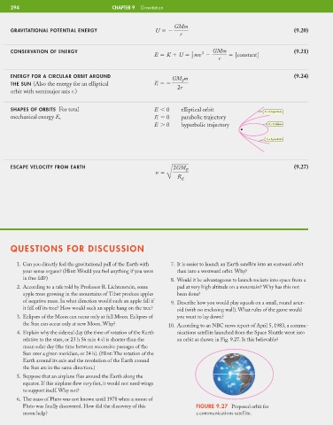 294 CHAPTER 9 Gravitation