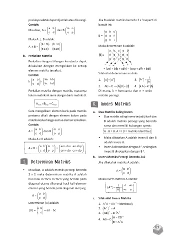 • Misalkan, A adalah matriks persegi berordo A = ab