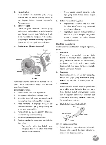 1. Tubuh simetri radial dan diploblastik. lain. Bentuk tubuh menyerupai bunga