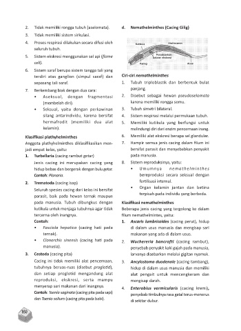 2. Tidak memiliki rongga tubuh (aselomata). d. Nemathelminthes (Cacing Gilig)