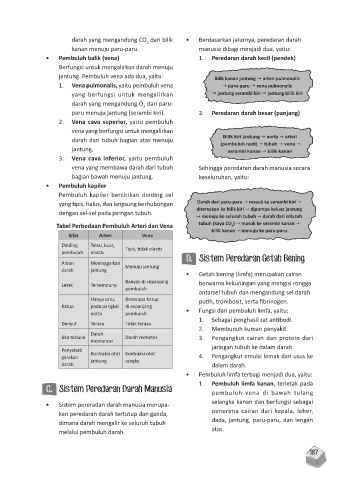Tabel Perbedaan Pembuluh Arteri dan Vena tubuh (kaya CO ) g masuk ke serambi kanan g